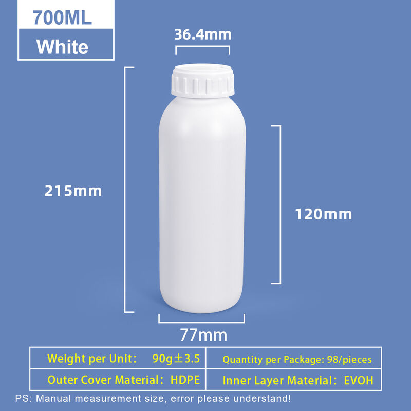 材料:HDPE 容量: 10ml 20ml 30ml 50ml 100ml 200ml 250ml 300ml 500ml 700ml 800ml 1000ml 色:白 この高阻害反応体ボトルは,プロの使用のために設計されています.この製品は,HDPE外壁とEVOH阻害層から構成された主要な構造を持っています.EVOHとHDPEの共挤出技術を使用このボトルは,特に乳製品,肉,果汁,調味料などの食品の無菌包装のために,液体包装業界で広く使用されています. さらに,食品以外の用途にも適しています包装溶媒や化学物質を含む. EVOHで製造されたプラスチック容器は 効果的にガラスや金属容器を入れ替えるため 化粧品や殺虫剤の包装などに最適です既存のフィルムより3倍高いガスの遮断性能この瓶は,アルカリ,腐食,漏れに 優れた耐性を有し,有機溶剤の浸透と揮発を効果的に防止します.コンテンツの完全性と安全性を確保する. 信頼性とプロフェッショナルなパッケージングソリューションのためにこの高バリアリアン反応体ボトルを選択してください.